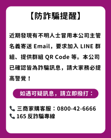 澄清聲明 近日有多起不明人士冒用本公司主管之名義寄發之電子郵件,該等電子郵件以有後續工作安排為由,請收件人先 […]